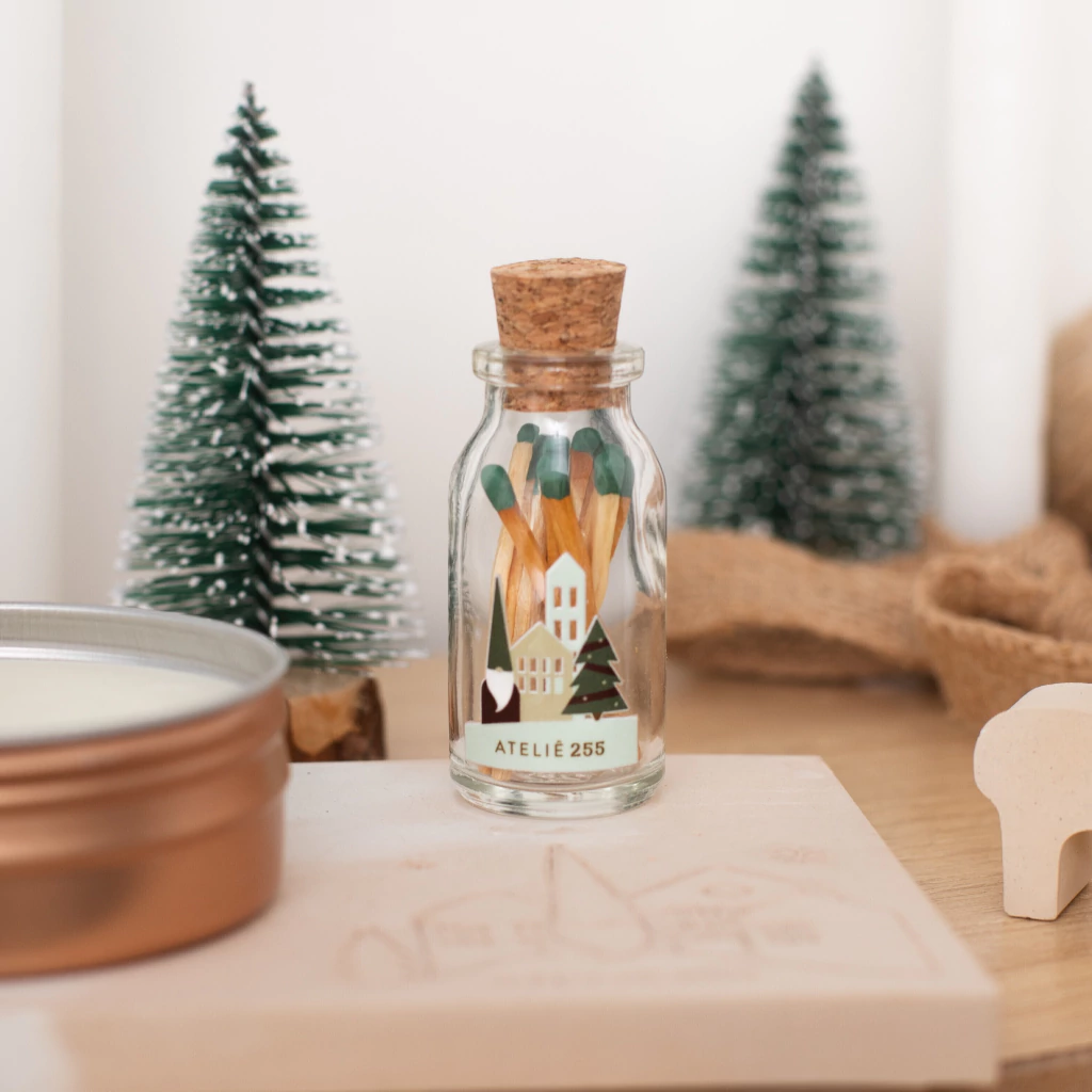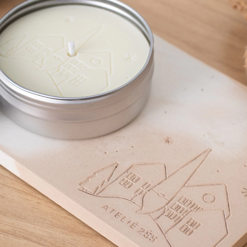 O Conjunto de Natal 2025 traz uma bandeja exclusiva, acompanhada da vela aromática natalina de Gingerbread (50g) e de um frasco de fósforos artesanal. Juntos, formam um enfeite encantador, que adiciona um toque de beleza e aconchego a qualquer ambiente.